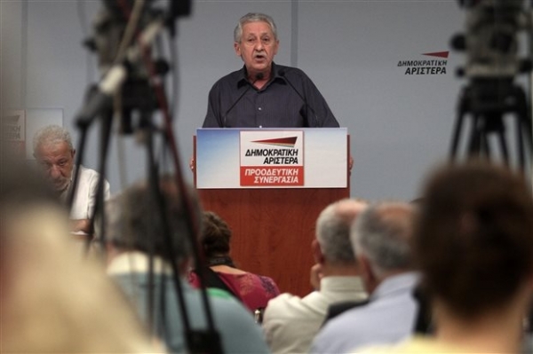 Δηλώνει: «Η θέση μου είναι, η Δημοκρατική Αριστερά να μην κατέβει στις εκλογές, να στηρίξει τον ΣΥΡΙΖΑ στη λογική της κυβερνώσας Αριστεράς, να ανασυγκροτηθεί κι όταν με το καλό βγουν τα αποτελέσματα και οδηγηθούμε σε μια κυβέρνηση με κορμό τον ΣΥΡΙΖΑ, να δει πώς θα κινηθεί στο νέο σκηνικό, που θα διαμορφωθεί. Εκτιμώ ότι δεν πρέπει ούτε να κατέβει αυτόνομα, ούτε όμως και να απορροφηθεί [...]. Η ΔΗΜΑΡ είναι το κόμμα του 'παρ' ολίγον', παρ' ολίγον κυβερνητικό, παρ' ολίγον συγκυβερνητικό με την Αριστερά, παρ' ολίγον ΠτΔ, όλα παρ' ολίγον είναι».