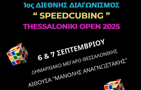 Το Σάββατο 6 και την Κυριακή 7 Σεπτεμβρίου 2025 η Θεσσαλονίκη γίνεται το επίκεντρο του διανοητικού αθλητισμού, φιλοξενώντας στην αίθουσα «Μανόλης Αναγνωστάκης» του Δημαρχιακού Μεγάρου τον Διεθνή Διαγωνισμό speed cubing,«Thessaloniki Open 2025».
