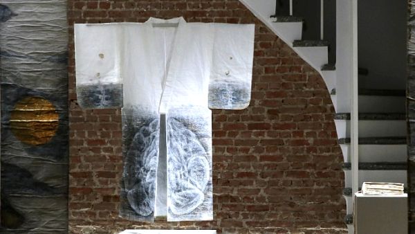 Στα μέσα Νοεμβρίου προηγήθηκε μια άλλη ενδιαφέρουσα έκθεση με τίτλο: ΚΙΜΟΝΟ (着), με την παρουσίαση του ομώνυμου έργου της εικαστικού Μαρίας Παπατζέλου. Στην έκθεση παρουσιάστηκε ένα ιαπωνικό κιμονό, δημιουργημένο από χειροποίητο ιαπωνικό χαρτί (washi). Επιπλέον, παρουσιάστηκαν τρεις ιαπωνικές ζώνες δημιουργημένες από το ίδιο χαρτί. Την έκθεση συμπλήρωνε ένα video art του Peter.W.Lewis από την περφόρμανς της Junko Sophie Kakizaki φορώντας το «Washi Kimono» της Μαρίας Παπατζέλου, το οποίο δημιουργήθηκε στο πλαίσιο της έκθεσης «In Praise of Zen» στο Tatami Museum of Art (2022), τον μεγαλύτερο Ζεν ναό της Ιαπωνίας. «Η έκθεση ΚΙΜΟΝΟ (着物)», σημειώνει ο κ. Γούδας, «αποτελεί έναν ύμνο στο χειροποίητο ιαπωνικό χαρτί (washi), αναδεικνύοντας ταυτόχρονα την αρμονική σχέση παράδοσης και τεχνολογίας στην ιαπωνική κοινωνία».