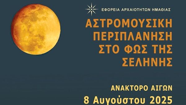 Υπό το φως του ολόγιομου φεγγαριού, το κοινό στην Ημαθία θα ζήσει δύο ιδιαίτερες βραδιές, που συνδυάζουν τη γνωριμία της πολιτιστικής κληρονομιάς με την εμπειρία της νυχτερινής θέασης και της μουσικής.