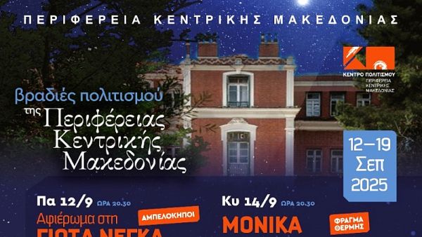 Τέσσερις βραδιές με τέσσερις αγαπητούς στο κοινό καλλιτέχνες, σε τρεις διαφορετικές τοποθεσίες περιλαμβάνει το φετινό πρόγραμμα του θεσμού «Βραδιές Πολιτισμού», που διοργανώνει για έκτη συνεχή χρονιά το Κέντρο Πολιτισμού της Περιφέρειας Κεντρικής Μακεδονίας.