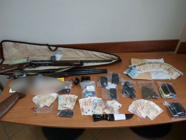 Στις έως τώρα έρευνες έχουν κατασχεθεί, μεταξύ άλλων, τέσσερα πολυτελή αυτοκίνητα, δύο φορτηγά αυτοκίνητα, επτά μοτοσικλέτες, ένα σκάφος, δύο κυνηγετικά όπλα, μαχαίρι, 8.000 ευρώ, 700 λέκε Αλβανίας, 22 συσκευές κινητής τηλεφωνίας και 32 κάρτες sim.