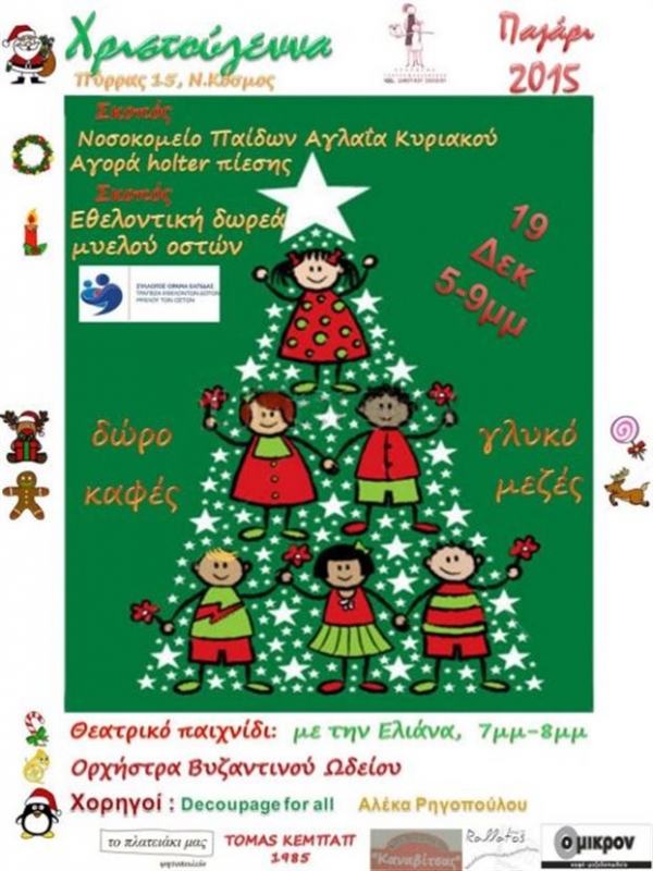 Εμπνευστής αυτής της κίνησης, η οποία συνάδει με το πνεύμα των Χριστουγέννων, είναι η πρόεδρος του Συλλόγου Γονέων και Κηδεμόνων του 100ου Δημοτικού Σχολείου Αθηνών κυρία Φανή Σωτηροπούλου. «Το περασμένο Σεπτέμβριο μάθαμε ότι το Αγλαϊα Κυριακού έχει ανάγκη από ένα holter πίεσης. Μετά από σχετική έρευνα που κάναμε, σκεφθήκαμε να κάνουμε την προσπάθεια μας και να το αγοράσουμε εμείς από τα έσοδα του Χριστουγεννιάτικου Παζαριού. Θέλουμε να προσφέρουμε κάτι σημαντικό και χρήσιμο σε ένα Νοσοκομείο σαν κι αυτό, που "φροντίζει" τα παιδιά μας τις δύσκολες στιγμές».