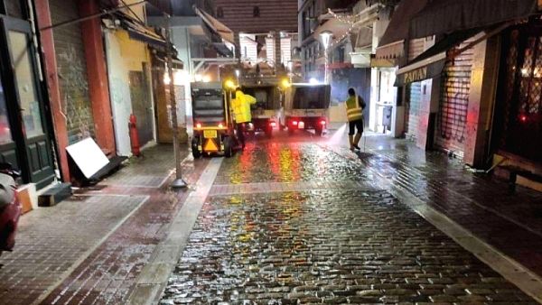Η υπηρεσία καθαριότητας, δεδομένων των αντικειμενικών δυσκολιών προσπελασιμότητας σε πολλά σημεία της πόλης, ειδικά στο κέντρο, ανταποκρίθηκε στο έπακρο, επισημαίνει ο κ. Δημαρέλος.