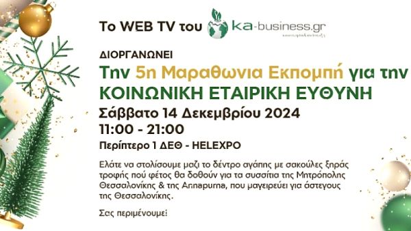 Αυτή η εκδήλωση αποτελεί μέρος της 5ης μαραθώνιας εκπομπής που διοργανώνει η ιστοσελίδα ka-business.gr, η οποία εστιάζει στην κοινωνική εταιρική ευθύνη και επιχειρηματικότητα.