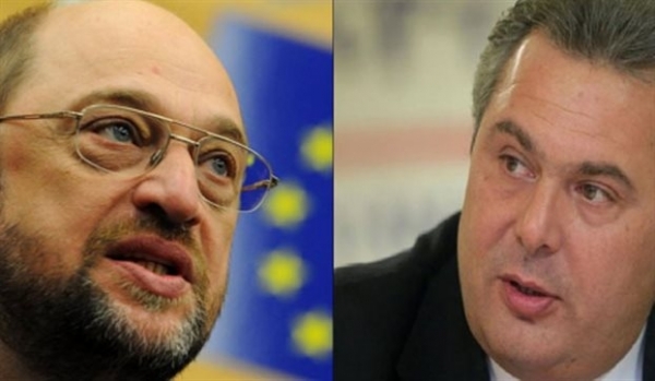 Στον Μάρτιν Σουλτς απάντησαν με ανακοίνωσή τους οι ΑΝΕΛ, κάνοντας λόγο για ανθύπατο που κάνει υποδείξεις στον κ. Τσίπρα με ποιον να συνεργαστεί, σημειώνοντας ότι «έτσι είχε μάθει να συμπεριφέρεται από την εποχή της υπάκουης στις γερμανικές απαιτήσεις συγκυβέρνησης Σαμαρά-Βενιζέλου» και τονίζοντας ότι η επίθεση κατά του Π.Καμμένου υποκρύπτει σαφείς πολιτικές σκοπιμότητες».