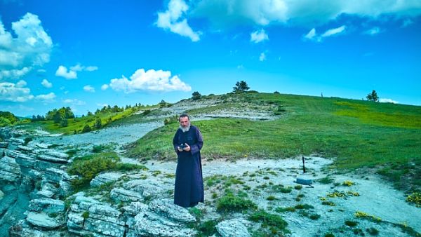 Μετά τον Όρθρο και μέχρι τον Εσπερινό, πιάνει την κάμερα, σηκώνει το drone και καταγράφει με κοντινά, μακρινά και εναέρια πλάνα την περιοχή του.