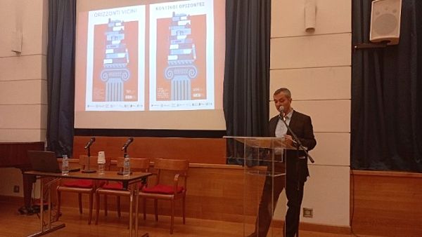 Ο διευθυντής του Ιταλικού Ινστιτούτου, κ. Νέρι, παρουσίασε το πρόγραμμα και τις συμμετοχές των συγγραφέων και εκδοτών που απαρτίζουν τους Κοντινούς Ορίζοντες, οι οποίοι περιλαμβάνουν θεματικές ενότητες σχετικές με τη σχέση των δύο χωρών.