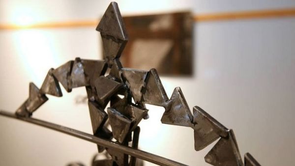 Στο εργαστήριο του γλύπτη Κώστα Καμπερίδη στην Κατερίνη Πιερίας, ανάμεσα σε σιδερένιες φιγούρες και κάθε είδους μεταλλικό αντικείμενο, από γρανάζια μέχρι φτυάρια, «ξύπνησε» εδώ και χρόνια μέσα στο σίδερο και ένας «μετανάστης» από την καστιλιάνικη Λα Μάντσα.
