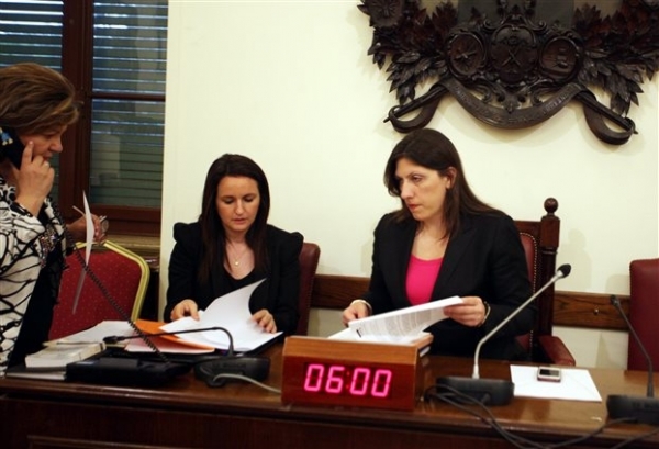 Η πρόεδρος της Βουλής Ζωής Κωνσταντοπούλου που προεδρεύει της Επιτροπής Διεκδίκησης, έκανε λόγο για μέγγενη των δανειστών κάτω από την οποία στενάζει η χώρα.