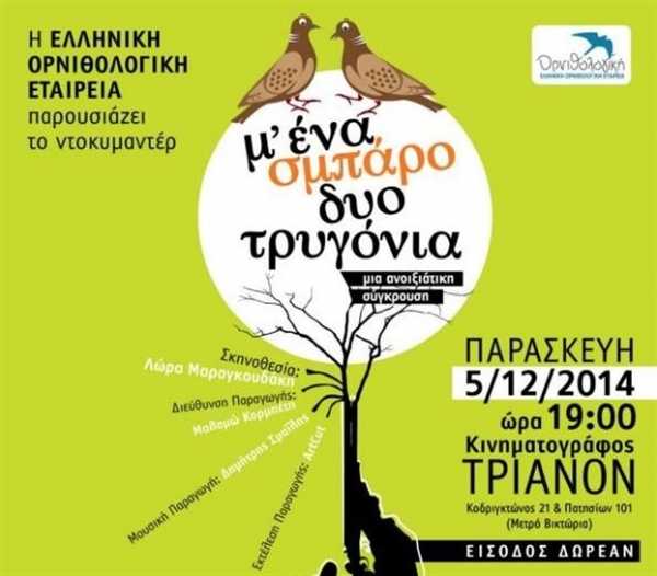 To ντοκιμαντέρ της Ορνιθολογικής «Μ' ένα Σμπάρο δυο Τρυγόνια» «παρακολουθεί» τους ανθρώπους που βρίσκονται στο επίκεντρο της σύγκρουσης, στον λαθροθήρα, στον κυνηγό που έγινε οικολόγος, στη γυναίκα που αναγκάζεται να στηρίξει μια παράδοση με την οποία διαφωνεί, στους κατοίκους που υποφέρουν και στους επιστήμονες που παρατηρούν και μελετούν τα πουλιά κατά τη μετανάστευση.