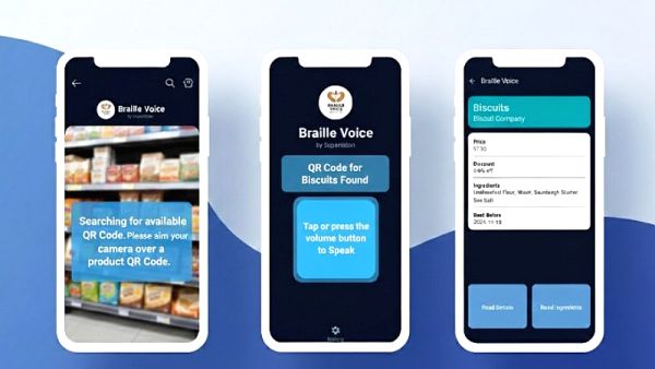 Το σύστημα BrailleVoice περιλαμβάνει την τοποθέτηση ανάγλυφων ετικετών QR Codes στην αρχή κάθε διαδρόμου και σε κάθε ράφι στο σούπερ μάρκετ. Κάθε ετικέτα μπορεί να περιλαμβάνει βασικές οδηγίες σε γραφή Braille. Η εφαρμογή είναι συμβατή με VoiceOver και TalkBack, καθοδηγεί φωνητικά τους χρήστες για τον εντοπισμό και τη σάρωση του QR code και επιτρέπει τη δημιουργία λίστας αγορών. Διαθέτει δυνατότητα επέκτασης για την αποστολή ειδοποιήσεων για εποχικές εκπτώσεις, προσφέροντας έτσι μια πλήρως ισότιμη αγοραστική εμπειρία.