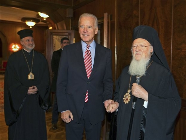 Προσερχόμενος στο Πατριαρχείο, ο Αμερικανός αντιπρόεδρος εξήρε την προσωπικότητα του Οικουμενικού Πατριάρχη. «Αυτός είναι ο άνδρας που πράττει αυτά τα οποία λέει» δήλωσε στους δημοσιογράφους.