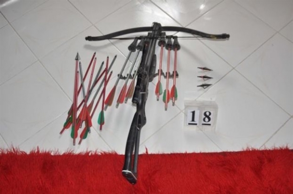 Ακολούθησε έλεγχος στο όχημα όσο και σε άλλους χώρους του συνεργείου, στην οικία και σε δεύτερο αυτοκίνητο του δράστη όπου εντοπίστηκαν και κατασχέθηκαν: Εννιά αμυντικές χειροβομβίδες, πέντε πολεμικά τυφέκια, δύο περίστροφα, τρία πιστόλια, εκ των οποίων ένα κρότου και ένα αυτοσχέδιο (τύπου στιλό), 29.385 φυσίγγια πυροβόλων όπλων, 960 φυσίγγια κυνηγετικών όπλων, δέκα σιδερογροθιές, τέσσερις θήκες όπλων, επτά φωτοβολίδες, δύο γεμιστήρες, ένα κλείστρο, πέντε μαχαίρια, μια μεταλλική πτυσσόμενη ράβδος, ένα μεταλλικό τόξο, δεκαέξι βέλη και τρεις μύτες τόξου, ένα σπρέϋ πιπεριού και μία συσκευή εκπομπής λέιζερ. Ακόμη κατασχέθηκαν πολλές κάρτες και συσκευές αποθήκευσης ψηφιακών δεδομένων.