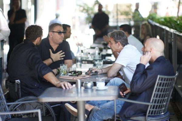 Ο κ. Μητσοτάκης το πρωί βρέθηκε σε γνωστό καφέ στο κέντρο της πόλης, όπου συναντήθηκε με τον γνωστό τραγουδιστή Αντώνη Ρέμο και τον παραολυμπιονίκη στην κολύμβηση, Αντώνη Τσαπατάκη.