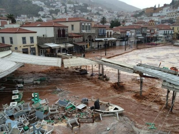 Από τη δυνατή νεροποντή σημειώθηκαν εκτεταμένες ζημιές σε ισόγεια σπιτιών, επιχειρήσεις και στο δίκτυο ύδρευσης του νησιού.