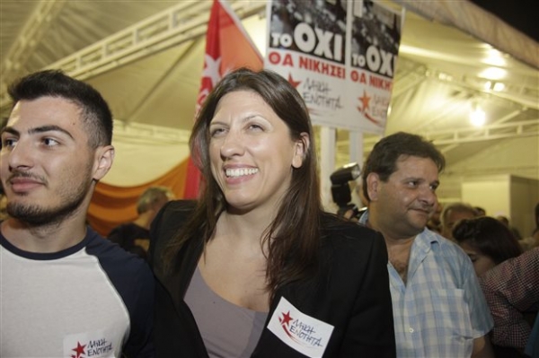 Στα Εξάρχεια άσκησε το εκλογικό της δικαίωμα η υποψήφια με τη Λαϊκή Ενότητα Ζωή Κωνσταντοπούλου.