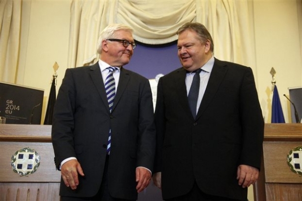 Ο κ. Σταϊνμάγερ είχε υποδεχθεί νωρίτερα με πολύ θερμά λόγια τον κ. Βενιζέλο προσφωνώντας τον «Αγαπητέ συνάδελφε και εκπρόσωπε της ελληνικής κυβέρνησης, αγαπητέ Ευάγγελε».