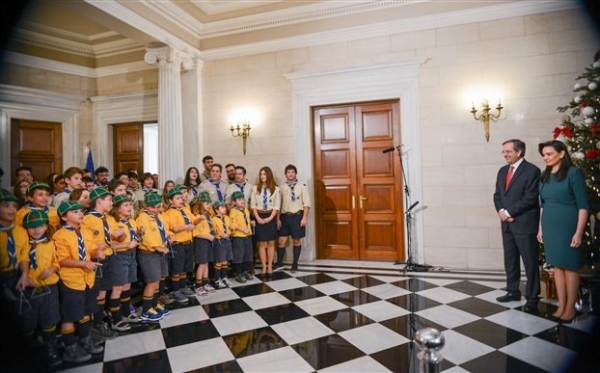 Αμέσως μετά, ο πρωθυπουργός άκουσε τα κάλαντα τόσο από την μπάντα της Ελληνικής Αστυνομίας όσο και της Πυροσβεστικής, αλλά και από προσκόπους και συγκεκριμένα από το Σώμα Ελλήνων Οδηγών.