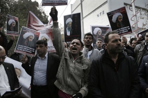 Οι διαδηλωτές φώναξαν συνθήματα για τον Αγιατολάχ που εκτελέστηκε πρόσφατα μαζί με ακόμα 46 άτομα «από το θεοκρατικό σουνιτικό καθεστώς του Ριάντ», όπως το χαρακτήρισε ο πρόεδρος του πολιτιστικού συνδέσμου Ελλάδας-Πακιστάν Σαχίντ Μοχάμεντ Τζαμίλ.