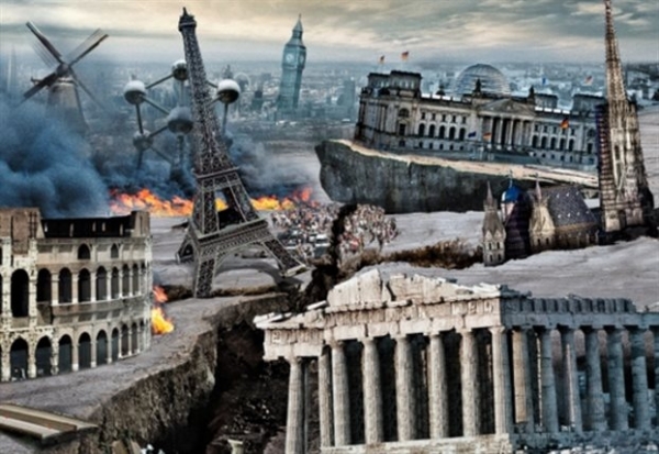 Στο συγκλονιστικό εξώφυλλο του τεύχους -με σαφείς αναφορές και στο ελληνικό ζήτημα- εμφανίζονται τα μεγαλύτερα μνημεία της Ευρώπης από διάφορες ευρωπαϊκές πόλεις, όπως η Ακρόπολη, ο Πύργος του Άιφελ, το Big Ben ή το Κολοσσαίο να βυθίζονται σε ένα τεράστιο ρήγμα.