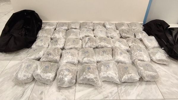 Ακολούθησε καταδίωξη, κατά την οποία οι επιβαίνοντες στο πρώτο όχημα, εγκατέλειψαν δύο ταξιδιωτικούς σάκους, οι οποίοι περιείχαν 39 κιλά ακατέργαστης κάνναβης. Οι συλληφθέντες είναι ένας 24χρονος, μια 26χρονη, ένας 29χρονος και ένας 44χρονος.
