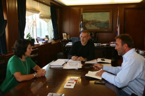 Γιάννης Μώραλης, ο εντεταλμένος δημοτικός σύμβουλος και επικεφαλής της ομάδας εργασίας που έχει αναλάβει τη διοργάνωση της Ευρωπαϊκής Ημέρας Θάλασσας 2015 κ. Πέτρος Κόκκαλης, καθώς και υπηρεσιακοί παράγοντες της Γενικής Διεύθυνσης Θαλασσίων Υποθέσεων της Κομισιόν.