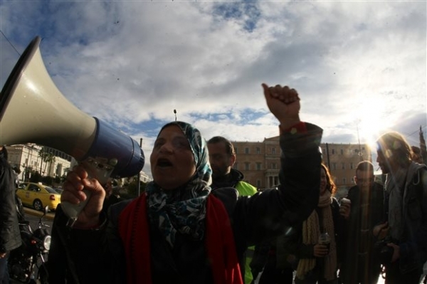 Οι σύροι πρόσφυγες αντιδρούν στην απομάκρυνση των 30 γυναικόπαιδων από το Σύνταγμα και ζητούν διαβατήρια για όλους.