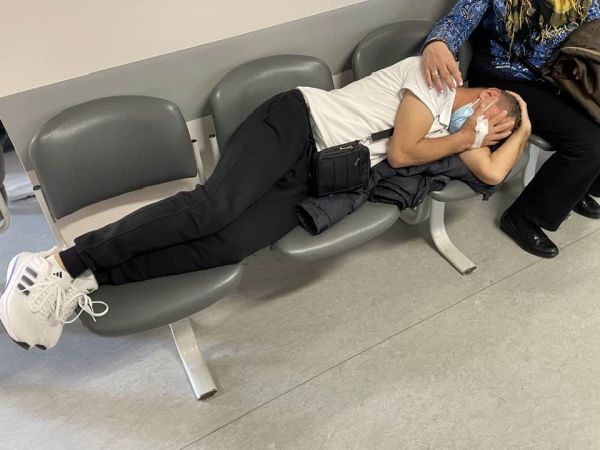 Στο ίδιο σαλόνι, μάλιστα,βρίσκονται άλλοι συνοδοί, ασθενείς που περιμένουν να μπουν στην κλινική, καθώς και ασθενείς που με τη σειρά τους θα κάνουν κι εκείνοι ενδοσκόπηση (γαστροσκόπηση ή κολονοσκόπηση). Οι τελευταίοι θα πάρουν στη συνέχεια τη θέση αυτού του άνδρα, ξαπλώνοντας στις καρέκλες του χώρου αναμονής ή θα κοιμηθούν καθιστοί, ακουμπώντας στον ώμο του συνοδού τους μέχρι να συνέλθουν.