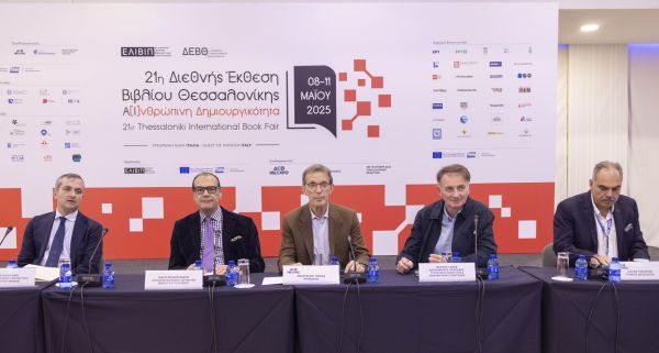 Από την πλευρά του ο πρόεδρος του Ελληνικού Ιδρύματος Βιβλίου και Πολιτισμού, κ. Νίκος Μπακουνάκης, σημείωσε πως η φετινή ΔΕΒΘ είναι η πρώτη που διοργανώνει ο νέος φορέας, ενώ τη χαρακτήρισε μεταβατική, σημειώνοντας πως στόχος είναι να παρουσιασθεί προσεχώς ένα νέο μοντέλο. Αναφέρθηκε επίσης στη σημαντική ιταλική συμμετοχή με το πλούσιο πρόγραμμά της, αλλά και στη βασική θεματική της φετινής διοργάνωσης, την Ανθρώπινη Δημιουργικότητα σε σχέση με την Τεχνητή Νοημοσύνη, που μας απασχολεί όλο και περισσότερο. Ο κ. Μπακουνάκης υπογράμμισε τη μεγάλη διάχυση της ΔΕΒΘ στην πόλη με banner, ψηφιακά πάνελ και υλικό, αλλά και τον σχεδιασμό για ακόμα μεγαλύτερη εξωστρέφεια στο μέλλον, ενώ τόνισε πως έχει εξασφαλιστεί η χρηματοδότηση από την Περιφέρεια Κεντρικής Μακεδονίας και για το 2026 και για το 2027. Σημείωσε δε πως όλο και περισσότερες πόλεις ανά τον κόσμο αναπτύσσουν εκθέσεις βιβλίου, καθώς αναγνωρίζουν την επίδρασή τους στην οικονομία τους, αλλά και σε ένα μεγάλο άυλο κεφάλαιο που ονομάζεται πολιτιστική διπλωματία.