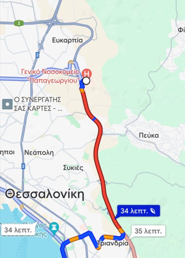 Απελπιστική είναι για άλλη μια μέρα η κατάσταση στον περιφερειακό, με το μποτιλιάρισμα να ξεκινά αρκετά πριν το νοσοκομείο «Παπαγεωργίου» και να φτάνει μέχρι την Καλαμαριά