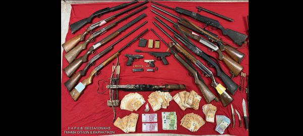 Θεσσαλονίκη: Έκρυβαν ολόκληρο οπλοστάσιο στο σπίτι τους – Από βαλλίστρα και λόγχες μέχρι καραμπίνες, μαζί τους κατασχέθηκε και μεγάλο χρηματικό ποσό