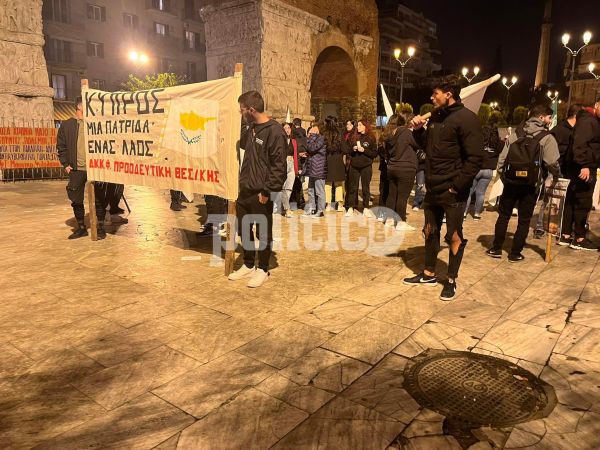 Μέλη φοιτητικών συλλόγων Κύπριων συγκεντρώθηκαν στην Καμάρα, για να πραγματοποιήσουν πορεία προς το τουρκικό προξενείο με αφορμή την συμπλήρωση των 39 χρόνων από την παράνομη ανακήρυξη του ψευδοκράτους.