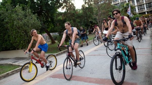 Η ποδηλατοδρομία που πραγματοποιείται στο πλαίσιο του World Naked Bike Ride, θα κινηθεί σε κεντρικούς δρόμους της πόλης.