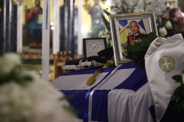 Συγγενείς, φίλοι και υψηλόβαθμα στελέχη των Ενόπλων Δυνάμεων αποχαιρέτησαν τον στρατηγό ενώ δεκάδες στεφάνια με συγκινητικά μηνύματα έχουν κατακλύσει το ναό.