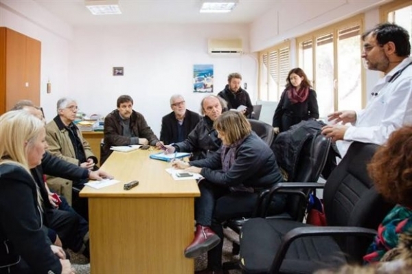 Τους δύο υπουργούς συνόδευαν οι βουλευτές του ΣΥΡΙΖΑ κυρία Βασιλική Κατριβάνου και κ. Κώστας Ζαχαριάς, οι γιατροί των Κοινωνικών Ιατρείων Αθήνας και Πειραιά κυρίες Σοφία Χριστοπούλου, Αύρα Παπαθανασίου και Σοφία Τζιτζίκου, η κυρία Έλενα Χατζημιχάλη από την «Αλληλεγγύη για Όλους» και στελέχη των δύο υπουργείων.