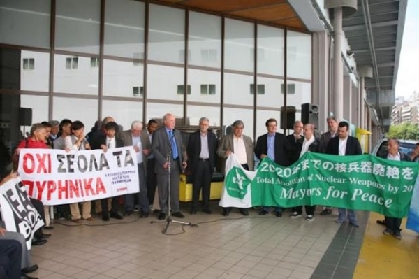 Τους επικεφαλής της ξένης αντιπροσωπείας και τους επιζώντες του ολοκαυτώματος του Ναγκασάκι και της Χιροσίμα υποδέχθηκαν ο αναπληρωτής υπουργός Ναυτιλίας κ. Θ. Δρίτσας, ο αντιδήμαρχος Πειραιά κ. Α. Αργουδέλλης, ο Πρόεδρος του ΟΛΠ Α. Ε. κ. Γιώργος Ανωμερίτης, εκπρόσωποι φορέων και αντιστασιακών οργανώσεων και μαθητές του Ε΄ Γυμνασίου Κερατσινίου.