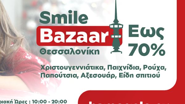 Από το Σάββατο 6 Δεκεμβρίου έως και την Κυριακή 21 Δεκεμβρίου, από 10:00 έως 20:00, οι επισκέπτες μπορούν να απολαύσουν το Bazaar στη ΔΕΘ – Helexpo, στο περίπτερο απέναντι από τον Πύργο του ΟΤΕ. Οι ενδιαφερόμενοι θα έχουν την ευκαιρία να αποκτήσουν ρούχα, παπούτσια, αξεσουάρ, καλλυντικά, παιχνίδια, χριστουγεννιάτικα δώρα και είδη σπιτιού, με έκπτωση έως και -70%.