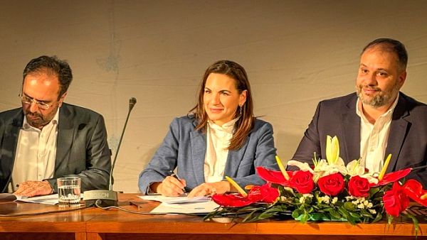 Μνημόνιο συνεργασίας υπέγραψαν η υπουργός Τουρισμού Όλγα Κεφαλογιάννη, ο δήμαρχος Βέροιας Κωνσταντίνος Βοργιαζίδης και ο δήμαρχος Ηρωικής Πόλης Νάουσας Νικόλαος Κουτσογιάννης για τη σύσταση και λειτουργία Οργανισμού Διαχείρισης και Προώθησης Προορισμού (DMMO) από τους δύο Δήμους.