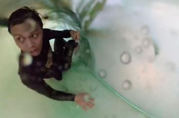 Συγκεκριμένα άντρας τραβούσε σε βίντεο την απόπειρα του να κατέβει από γιγαντιαία νεροτσουλήθρα, ωστόσο κόλλησε δύο φορές μέσα σε αυτήν παλεύοντας να βγει.