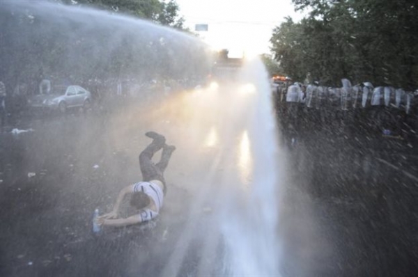 Οι ακτιβιστές, άλλοι με κουβάδες γεμάτους νερό, άλλοι με μπουκάλια και άλλοι με νεροπίστολα έβρεξαν αστυνομικούς έξω από το προεδρικό μέγαρο, φωνάζοντας παράλληλα συνθήματα όπως «Είμαστε οι κυρίαρχοι της χώρας μας» και «Σήμερα είναι η σειρά σας για νερό».