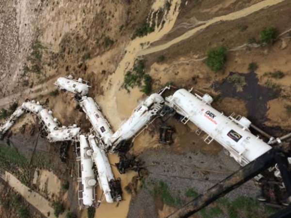 Τα μέσα ενημέρωσης προβάλλουν θεαματικές αεροφωτογραφίες που ελήφθησαν από το τρένο που εκτροχιάστηκε χθες στην πολιτεία Κουίνσλαντ, η οποία είχε πληγεί προηγουμένως από ισχυρές βροχοπτώσεις και πλημμύρες.