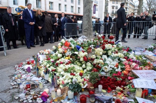 Η Γαλλία φέρνει την ελευθερία της έκφρασης παντού, αλλά υπερασπίζεται επίσης και άλλες αξίες που πρεσβεύει: την ειρήνη, τον σεβασμό των πεποιθήσεων, τον διάλογο μεταξύ των θρησκειών», δήλωσε κατά τη διάρκεια της καθιερωμένης συνάντησής του με τους δημοσιογράφους για το νέο έτος, γεγονός που του έδωσε την ευκαιρία να αναφερθεί «και στις πληγές της Γαλλίας».