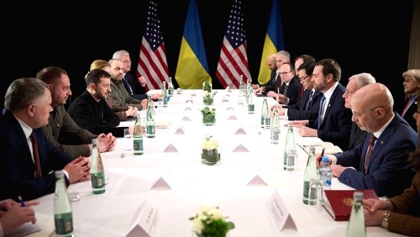 Βανς και Ζελένσκι συναντήθηκαν στο περιθώριο της Διάσκεψης του Μονάχου για την Ασφάλεια. Αμέσως μετά, είπαν στους δημοσιογράφους ότι είχαν μια «καλή συζήτηση» και ότι θα ακολουθήσουν και άλλες «τις επόμενες ημέρες, εβδομάδες και μήνες», κατά τα λεγόμενα του Βανς.