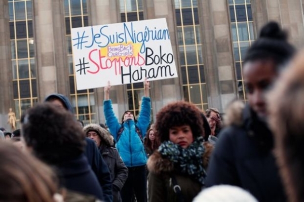 * Διαδήλωση κατά της βίας της Μπόκο Χαράμ σημειώθηκε την Κυριακή στο Τροκαντερό στο κέντρο του Παρισιού, με ένα από τα πλακάτ στα χέρια των διαδηλωτών να γράφει ««Είμαι Νιγηριανός. Σταματήστε την Μπόκο Χαράμ» -παραπέμποντας στο «Je Suis Charlie».