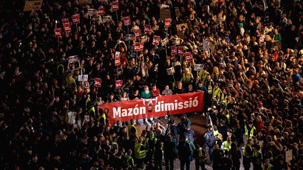 Οι διαδηλωτές συγκεντρώθηκαν αργά το απόγευμα μπροστά από το δημαρχείο της Βαλένθια πριν κάνουν πορεία προς την έδρα της περιφέρειας, διαπίστωσε δημοσιογράφος του Γαλλικού Πρακτορείου.