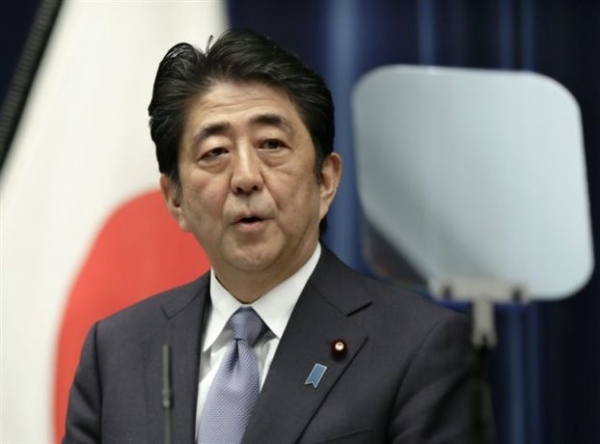 Σε τηλεοπτικό διάγγελμα μία ημέρα πριν τη συμπλήρωση 70 χρόνων από την ήττα της Ιαπωνίας στον Β' Παγκόσμιο Πόλεμο (στις 15 Αυγούστου 1945), ο Άμπε εξέφρασε τη βαθύτατη θλίψη του για τα θύματα του Β' Παγκοσμίου Πολέμου.