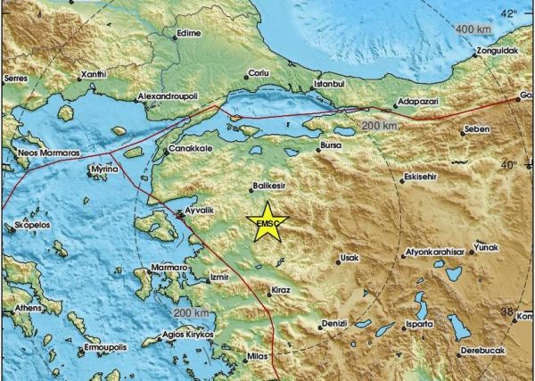 Δυνατός σεισμός στη Δυτική Τουρκία, 4,8 Ρίχτερ, χωρίς αναφορές για ζημιές ή τραυματισμούς. Ένας σεισμός ισχύος 4,8 βαθμών στη κλίμακα Ρίχτερ καταγράφηκε στη Δυτική Τουρκία. Η σεισμική δόνηση σημειώθηκε 55 χιλιόμετρα νοτιοανατολικά του Μπαλικεσίρ, στις 21:58, με εστιακό βάθος 7 χιλιομέτρων.
