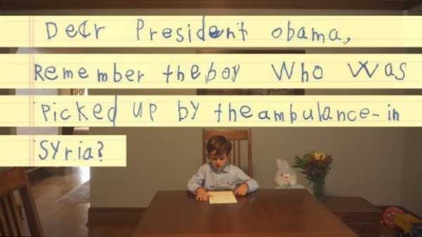 Ο 6χρονος Άλεξ από τη Νέα Υόρκη αναφέρει στην επιστολή του προς τον Αμερικανό πρόεδρο: «Αγαπητέ πρόεδρε Ομπάμα, θυμάστε το αγόρι που τον μετέφερε το ασθενοφόρο στη Συρία;»
