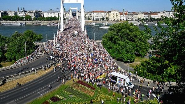 Σε εορταστική ατμόσφαιρα, ένα τεράστιο πλήθος διαδήλωσε σήμερα στη Βουδαπέστη, αψηφώντας την απαγόρευση της αστυνομίας για τη διεξαγωγή της Πορείας Υπερηφάνειας της κοινότητας ΛΟΑΤΚΙ+ (Pride).